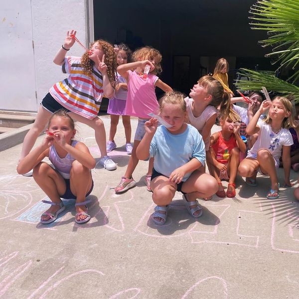 Please send your camper in comfortable active wear and close toed shoes, as we sometimes do outdoor activities, e.g., sidewalk chalking, bubble blowing, etc. We do not recommend dance clothes for camp! Packing dance shoes is optional; we may use them in certain dance routines/classes, but we have plenty at the studio that campers can borrow.